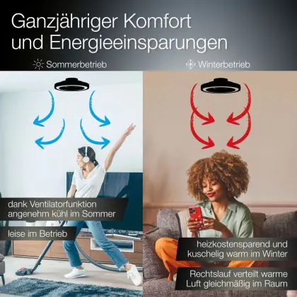 - Flüsterleiser Betrieb – perfekt für Schlaf- oder Arbeitsräume