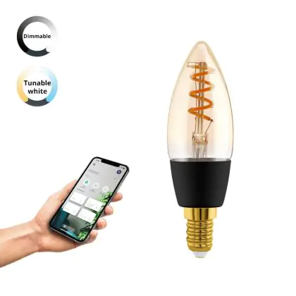 Die Eglo Connect.Z Smart LED Kerze E14 Fadenlampe Messing 4.9W 320lm - 827-865 Abstimmbares Weiß | Dimmbar - Ersatz Für 25W ist eine effiziente E14 LED-Lampe mit Retrodesign und der perfekte Ersatz für Ihre konventionellen 25W Lampen mit E14. Zudem strahlt sie Licht in der Farbtemperatur 2700K - 6500K Tunable White aus und punktet durch eine lange Lebensdauer.