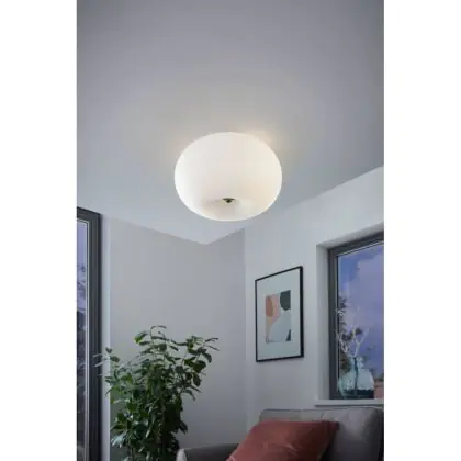 Beschreibung Eglo Deckenleuchte Optica Stahl Satin-Nickel | Geeignet für 2x E27