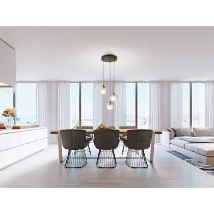 Die Eglo Pendelleuchte Ariscani Stahl Schwarz | Geeignet für 3x E27 sorgt für eine angenehme Ausleuchtung und punktet durch modernes Design. Diese Leuchte ist speziell zur Montage an der Decke vorgesehen.
