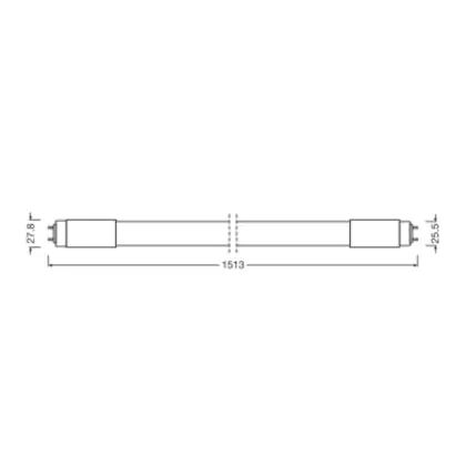 Wenn Sie zu LED wechseln, ist es wichtig, dass Sie die Länge und Wattanzahl Ihrer bisherigen Leuchtstoffröhre beachten. Diese 24 W LED-Röhre ersetzt eine konventionelle 58 W Leuchtstoffröhre mit einer Länge von 1513 mm. Der Durchmesser beträgt genau wie bei der konventionellen T8-Leuchtstoffröhre 25,4 mm. Auch der Sockel ist gleich: G13. Dieser kommt mit zwei Sockelstiften daher, die genau 13 mm auseinanderstehen.