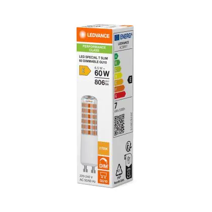 Die Ledvance Special T Slim LED Röhre one-handed GU10 PAR16 6.5W 806lm 360D - 827 Extra Warmweiß | Ersatz Für 60W ist eine effiziente GU10 LED-Lampe und der perfekte Ersatz für Ihre konventionelle Halogenlampe mit 60W und einem GU10-Sockel, bei welchem die zwei Stifte einen Abstand von 10 mm zueinander haben. Zudem strahlt das Produkt Licht in der Farbtemperatur 2700K - Extra Warmweiß aus und punktet durch eine lange Lebensdauer.