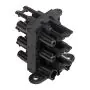 Der schwarze Kabelverteiler hat eine männliche und fünf weibliche Endungen.