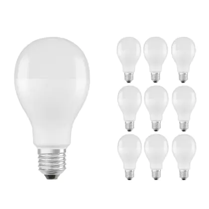 Die Mehrfachpackung 10x Ledvance CLASSIC LED E27 Birne Matt 19W 2452lm - 827 Extra Warmweiß | Ersatz für 150W ist eine effiziente E27 LED-Lampe und der perfekte Ersatz für Ihre konventionellen 150W Lampen mit E27-Sockel. Zudem strahlt sie Licht in der Farbtemperatur 2700K - Extra Warmweiß aus und punktet durch eine lange Lebensdauer.