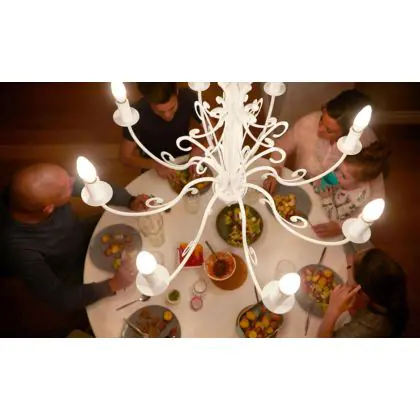 Die E14 LED-Lampe von Philips kann mit der Farbtemperatur 2700K - Extra Warmweiß sowohl als Akzent- als auch als Allgemeinbeleuchtung verwendet werden. Als Faustregel gilt: Je niedriger der Kelvinwert, desto gemütlicher wirkt das Licht.