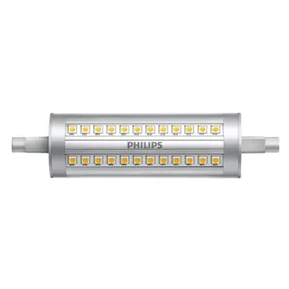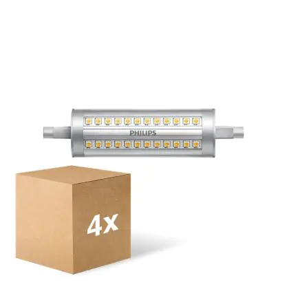 Die Mehrfachpackung 4x Philips Corepro LED Lineair R7s 118mm 14W 2000lm - 840 Kaltweiß | Dimmbar - Ersatz Für 120W ist eine effiziente R7s LED-Lampe und der perfekte Ersatz für Ihre konventionelle Halogen-Stablampe mit 120W. Zudem strahlt sie Licht in der Farbtemperatur 4000K - Kaltweiß aus und punktet durch eine lange Lebensdauer.