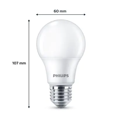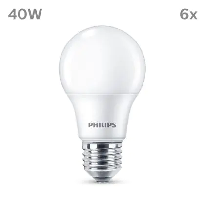 Die Mehrfachpackung 6x Philips Glühbirne LED E27 Birne Matt 5W 470lm - 827 Extra Warmweiß ist eine effiziente E27 LED-Lampe und der perfekte Ersatz für Ihre konventionellen W Lampen mit E27-Sockel. Zudem strahlt sie Licht in der Farbtemperatur 2700K - Extra Warmweiß aus und punktet durch eine lange Lebensdauer.