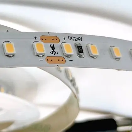 Der LED-Strip ist standardmäßig 5 Meter lang. Sie haben aber die Möglichkeit, das Lichtband flexibel zu kürzen. Dies ist nur an den gekennzeichneten Stellen möglich - zu erkennen an dem Symbol einer Schere. Zudem haben Sie die Möglichkeit, LED-Streifen miteinander zu verbinden, mit einer maximalen Länge von 10 Metern. Dabei müssen Sie die Leistung des angeschlossenen Treibers berücksichtigen. Wenn die Wattzahl höher ist als die Leistung des Treibers, leuchten die LED-Streifen nicht.
