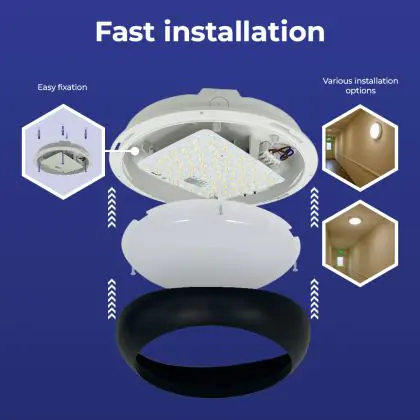 Die Noxion LED-Wand- und Deckenleuchte Pro V2 Weiß 12/16/20W 2400lm - 830-840-865 CCT | 325mm - IP65 - Bewegungs- und Lichtsensor + Ring Schwarz ist eine Feuchtraumleuchte. Sie strahlt Licht in der Farbtemperatur 3000K - 4000K - 6500K CCT aus und punktet durch eine lange Lebensdauer. Diese Leuchte ist speziell zur Verwendung in Feuchträumen (Keller, Waschräume, etc.) vorgesehen.