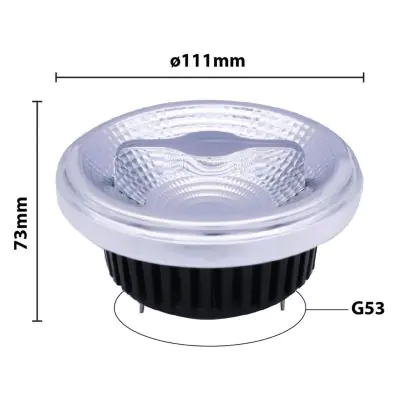 Die Noxion Lucent LED-Spot G53 AR111 12W 600lm 40D - 930 Warmweiß | Höchste Farbwiedergabe - Ersatz für 50W ist eine effiziente G53 LED-Lampe und der perfekte Ersatz für Ihre konventionelle Halogenlampe mit 50W und einem G53-Sockel, bei dem die beiden Stifte einen Abstand von 53 mm zueinander haben. Die Abkürzung AR111 zeigt Ihnen, dass der Reflektor einen Durchmesser von 11 cm hat. Zudem strahlt das Produkt Licht in der Farbtemperatur 3000K - Warmweiß aus und punktet durch eine lange Lebensdauer.
