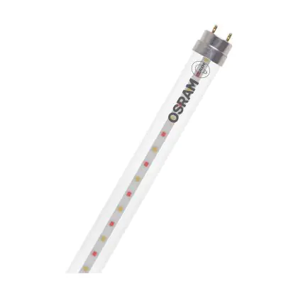 Die Osram LED Röhre T8 Fluora (EM/Mains) Standard Output 15W 1150lm - 825 Extra Warmweiß | 120cm - Ersatz Für 36W ist eine effiziente LED-Röhre und der perfekte Ersatz für Ihre konventionelle Leuchtstoffröhre mit 36W und einem G13. Die Röhre hat eine Länge von 1213 mm und einen Durchmesser von 27 mm. Zudem strahlt das Produkt Licht in der Farbtemperatur 2500K - Extra Warmweiß aus und punktet durch eine lange Lebensdauer.