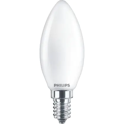 Die Philips Corepro LED Kerze E14 Matt 4.3W 470lm - 827 Extra Warmweiß | Ersatz für 40W ist eine effiziente E14 LED-Lampe und der perfekte Ersatz für Ihre konventionellen 40W Lampen mit E14-Sockel. Zudem strahlt sie Licht in der Farbtemperatur 2700K - Extra Warmweiß aus und punktet durch eine lange Lebensdauer.