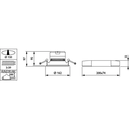 Der Ausschnitt einer Leuchte unterscheidet sich von den Abmessungen der Leuchte selbst und bezeichnet speziell die Größe der Öffnung in der Decke, die für die sichere Montage der Lichtquelle benötigt wird.