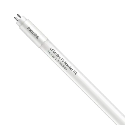 Die Philips LED Röhre T5 MASTER (Mains AC) High Efficiency 16.5W 2500lm - 840 Kaltweiß | 115cm - Ersatz für 28W ist eine effiziente LED-Röhre und der perfekte Ersatz für Ihre konventionelle Leuchtstoffröhre mit 28W und einem G5. Die Röhre hat eine Länge von 1150 mm und einen Durchmesser von mm. Zudem strahlt das Produkt Licht in der Farbtemperatur 4000K - Kaltweiß aus und punktet durch eine lange Lebensdauer.