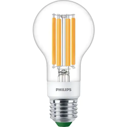 Die Philips MASTER LED Glühbirne Ultra Efficient E27 Birne Klar 4W 840lm - 830 Warmweiß | Dimmbar - Ersatz für 60W ist eine effiziente E27 LED-Lampe und der perfekte Ersatz für Ihre konventionellen 60W Lampen mit E27-Sockel. Zudem strahlt sie Licht in der Farbtemperatur 3000K - Warmweiß aus und punktet durch eine lange Lebensdauer.