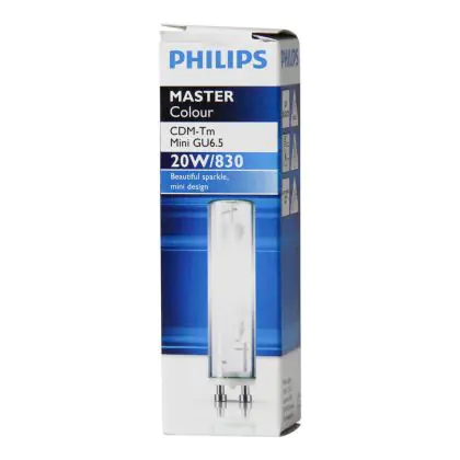 CDM-Tm Mini sind kompakte Entladungslampen mit Keramik-Brenner. Dies sind Miniatur-Lampen und dadurch sehr kompakt. Sie kombinieren einen niedrigen Stromverbrauch mit einer hohen Lichtleistung. Der einfache GU6.5 Lampensockel der Philips CDM-Tm Mini 20W 830 GU6.5 (MASTERColour) Entladungslampe macht ein einfaches Austauschen möglich. Es ist kein Installateur notwendig, Sie können es ganz einfach selbst tun.