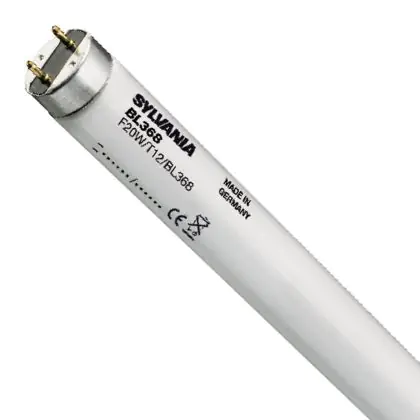 Die Sylvania BL368 T12 40W - Schwarzlicht | 60cm ist eine Leuchtstoffröhre mit einer Länge von 600 mm. Das Produkt hat einen Durchmesser von 28 mm. Die Röhre strahlt Schwarzlicht aus und punktet durch eine lange Lebensdauer.
